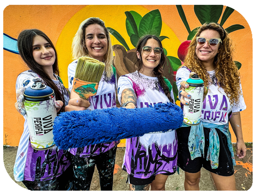 Valoriza o grafite e as artes visuais como expressão de identidade e inclusão. Conecta comunidades periféricas, marcas e empresas em ações de impacto social.
